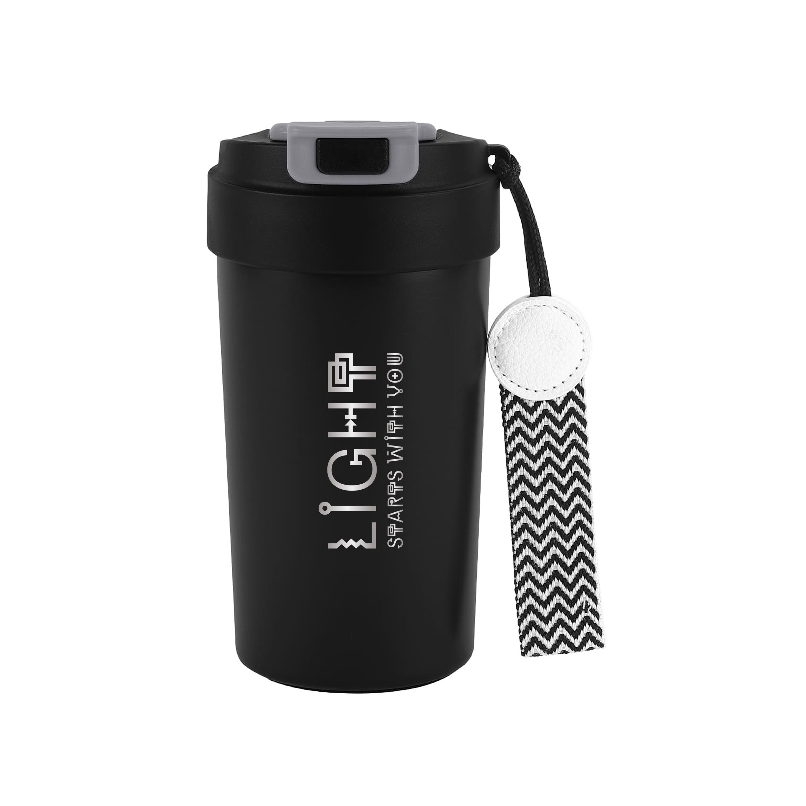 Термокружка з подвійною стінкою з нержавіючої сталі та вакуумною кришкою з кнопкою блокування.